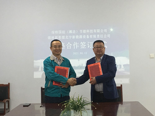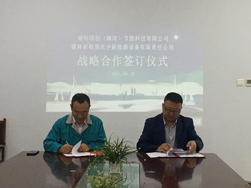 4月12日,绿特与北宇新能源战略合作签约仪式在绿特公司隆重举行,绿特董事长王泽富、北宇新能源杨总共同出席了签约仪式。