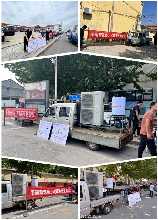 8月伊始,绿特组建热泵巡展车队,开启了下乡宣传活动,希望通过此次地推能够让够多的农村用户了解到户用空气能热泵一体机的优势,为取缔农村燃煤供暖提供新的选择方案。考虑到乡镇村庄较为分散,因此为了能够对户用空气能热泵一体机起到更好的宣传,绿特巡展小组选择在集市上进行展示,从而达到一传十、十传百的效果。