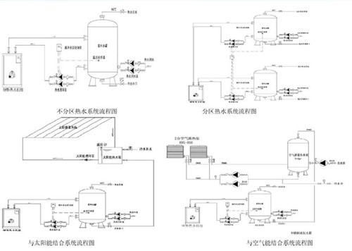 空气源热泵加热空气源留热水箱,热水箱的供水作为留热水箱的补水,如温度不够,中央热水机组自动启动加热。空气能能够承压,通常使用承压式空气能热水箱,供水时压力平衡较好。