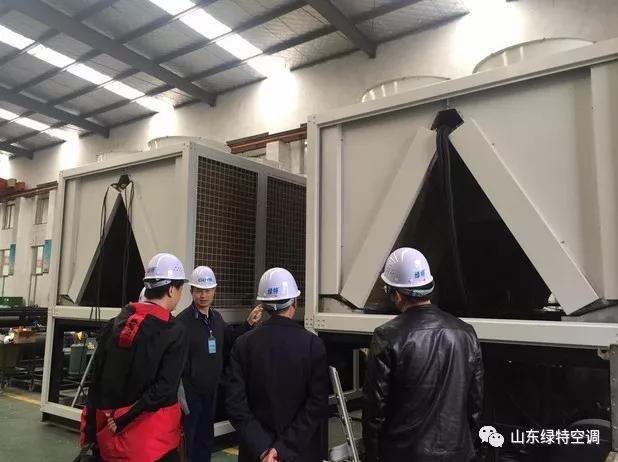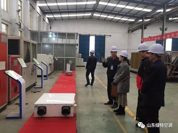 在绿特王董事长的陪同下,调研组一行深入公司车间,进行了实地的考察。王董在车间内对绿特-35℃超低温空气源热泵、工业余热型热泵、污水源热泵等新型清洁能源产品进行了详细的介绍,调研组对绿特产品的先进性与科技性给与了高度的评价。