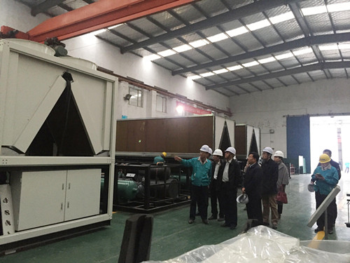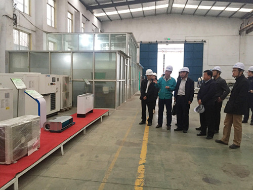在参观过程中,王总向调研组详细的介绍了集团的产品-35℃超低温空气源热泵、空气源热泵热风机、工业余热型热泵等产品,调研组对公司的先进成果、过硬技术给与了高度的评价与赞扬。