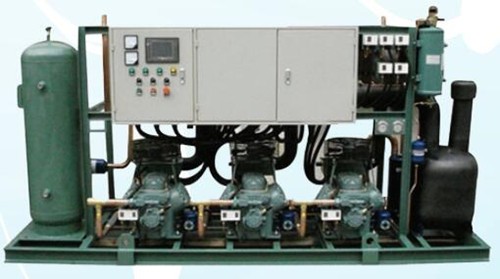 产品特点: 以比泽尔半封闭制冷压缩机为主机,质量好、可靠性高; 采用多台压缩机并联,共用排气总管、吸气总管、冷凝器、储液器等,形成一个制冷循环系统,机组制冷量大,便于集中控制产品紧凑,集中安装,占地空间小; 可根据冷负荷的变化实现多级能量调节,从而有效减低设备运行费用; 可减小机器故障对运行的影响,增加机组运行的可靠性。